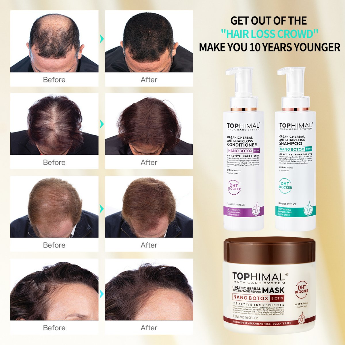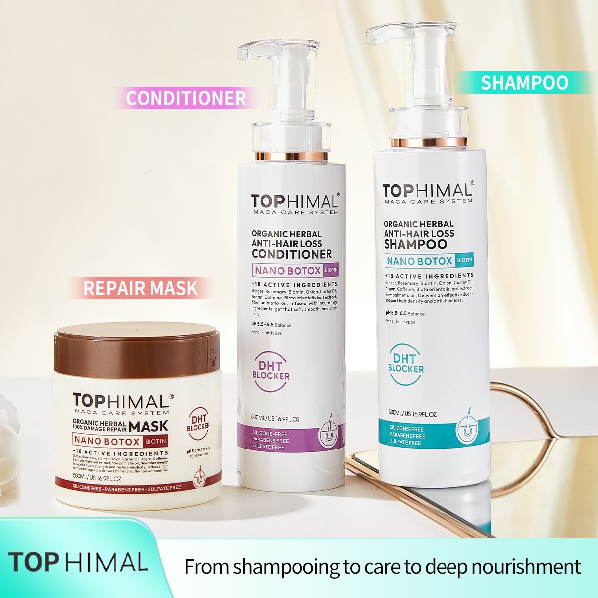 Tophimal Organic Herbal Anti-Hair Loss Nano Botox Biotin shampoo and Condtioner 500ml